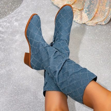 Women’S Western Cowboy Boots – Slip-On Chunky Heel (Mid-Heel) Thick Platform, Non-Slip Rubber Sole, All-Season Formal & Casual Boots for Jeans, Dresses, Everyday & Special Events – Easy-Clean Synthetic Cover-like Appearance, Cowgirl Boots, Cold Weather Footwear, Durable Construction, Fashionconscious Women, Summer Long Boots For Women, Boot For Woman, Cowboy Boot For Woman, Boot For Woman, Elegant Boot For Woman, Royal Blue Boot For Woman, Fold Over Boot, Folded Boot, Fold Over Boot