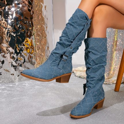 Women'S Chunky Block Heel Western Boots - Slip-Resistant Rubber Sole, Elegant Pointed Toe Knee-High Boots, All-Season Formal & Casual Outfits - Easy Zipper Closure for Parties, Office, Casual Attire - Women'S Fashion Boots, Party Footwear, Sleek Boot Design $31.56 – $35.28Price range: $31.56 through $35.28