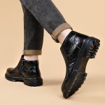 Men’s Glossy Square Toe Lace-up Platform Boots – Casual Walking Shoes – Comfortable And Easily Wiped Clean