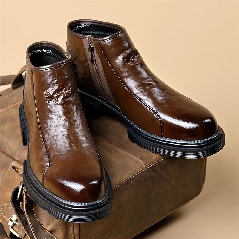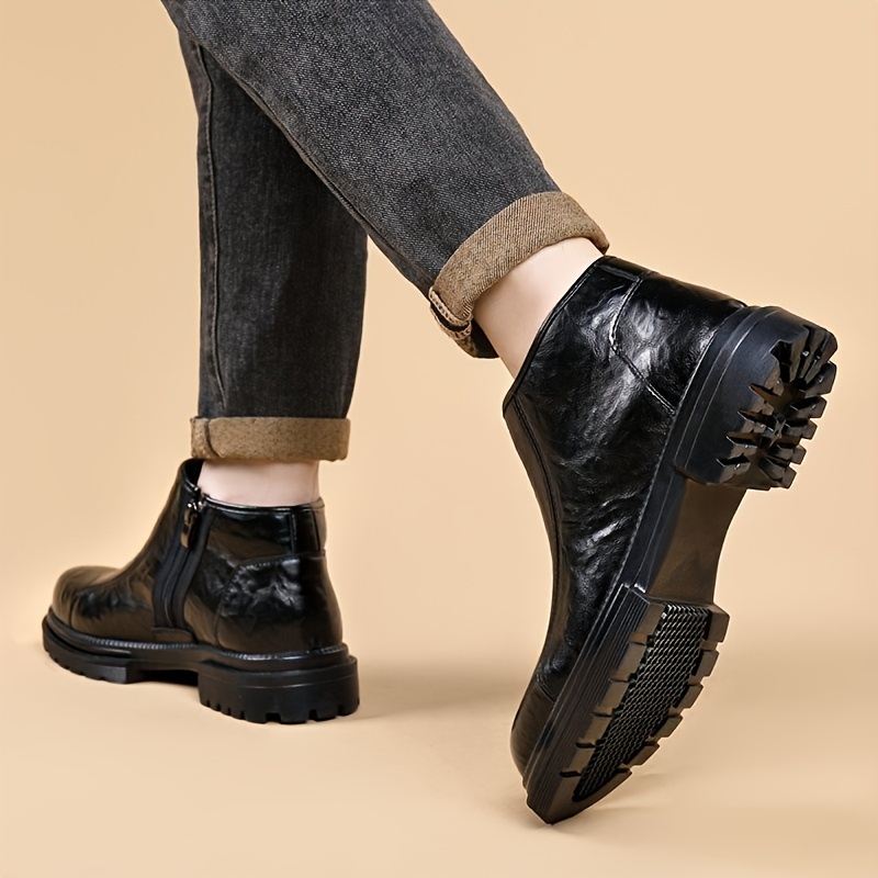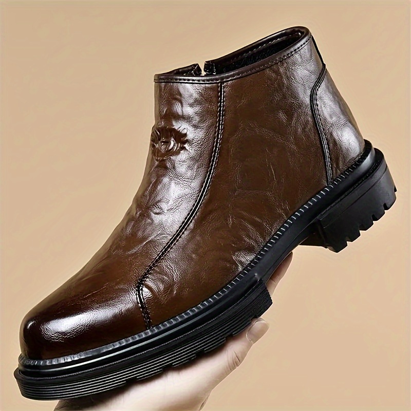 Home Men's Boots Men’s Casual Solid Color Boots With Zipper, Non-slip Wear-resistant Oxford Boots For All Seasons