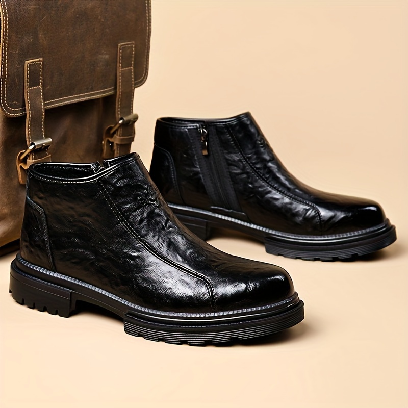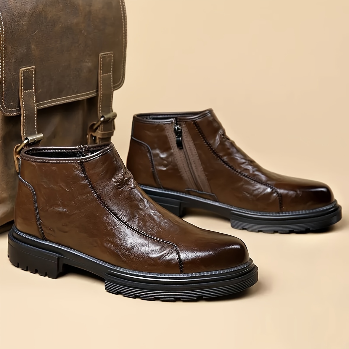 Men’s Casual Solid Color Boots With Zipper, Non-slip Wear-resistant Oxford Boots For All Seasons