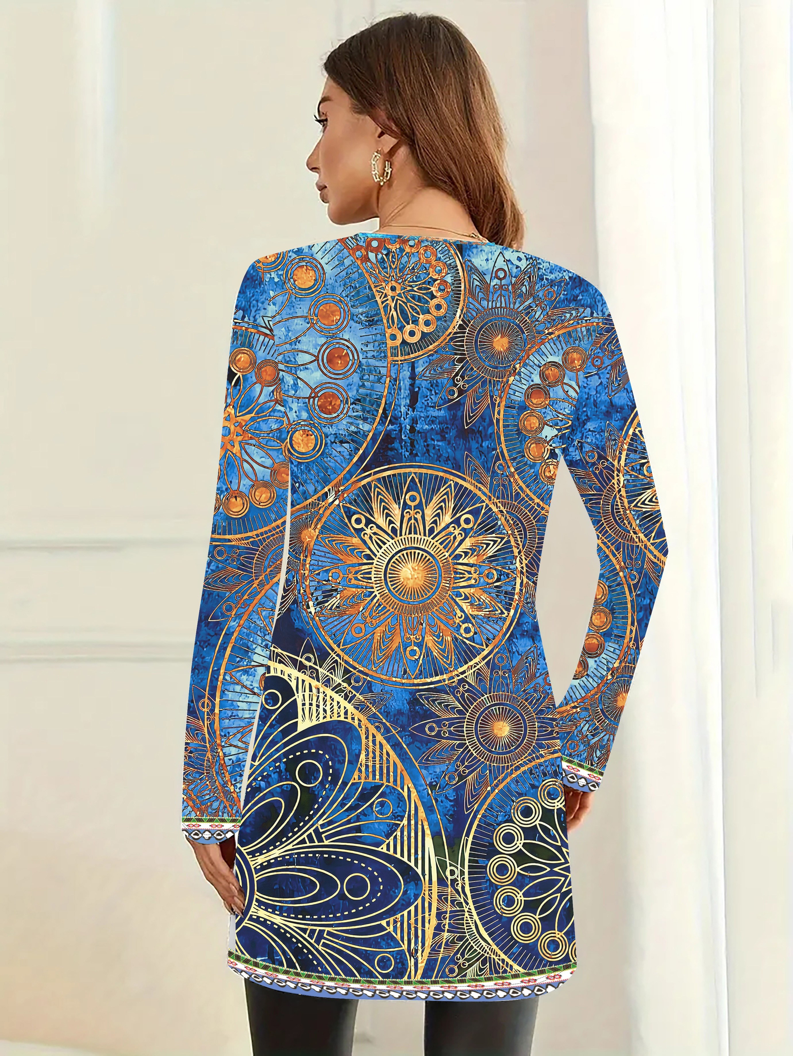 Home Women's T-Shirt Women’S Long Tunic with a Vibrant Printed Shawl Coat
